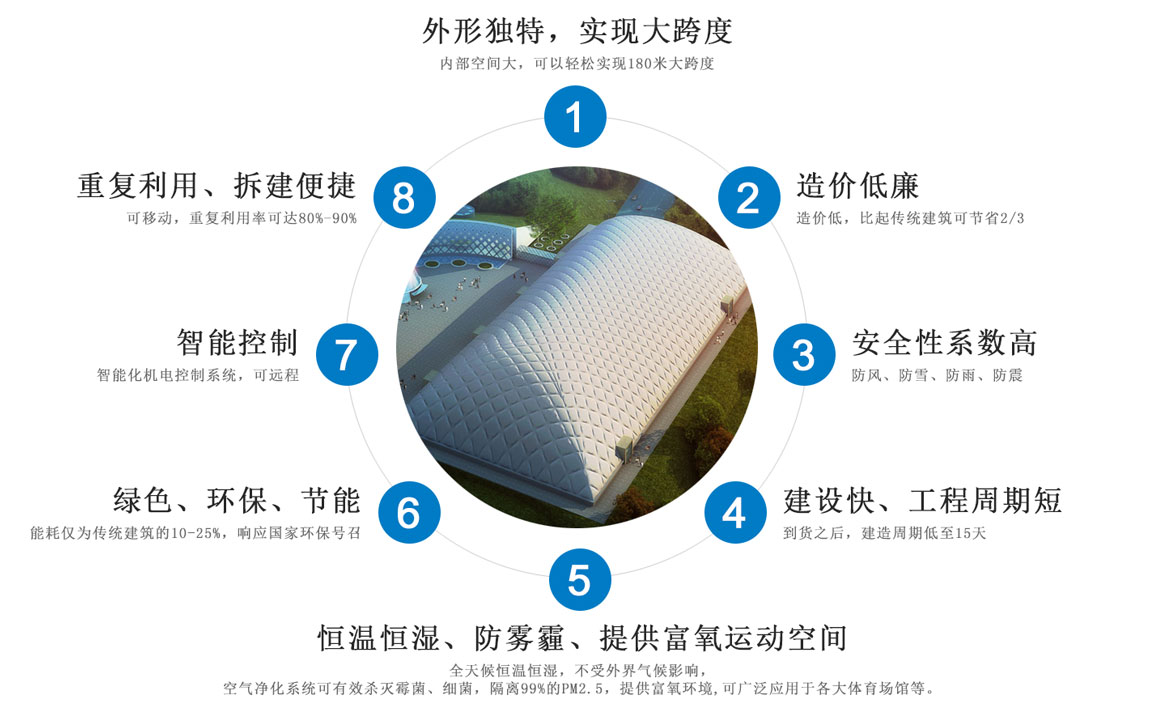 氣膜建筑場地等環境適應能力強,建設快,能應用在各個領域